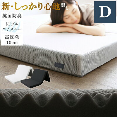 【P5倍★本日12時〜大サービス!】マットレス ダブル 布団 高反発 高反発マットレス 敷き布団 敷布団 コンパクト 収納 3つ折り 三つ折り 折りたたみ 極厚 かため 抗菌 防臭 防ダニ 洗える 通気性 腰 白 黒 おしゃれ エアースルー ダブル 厚さ10cm